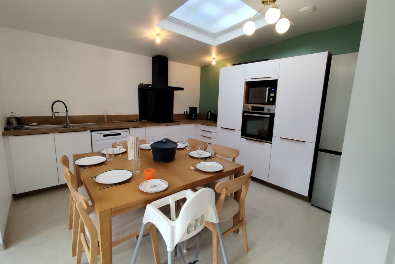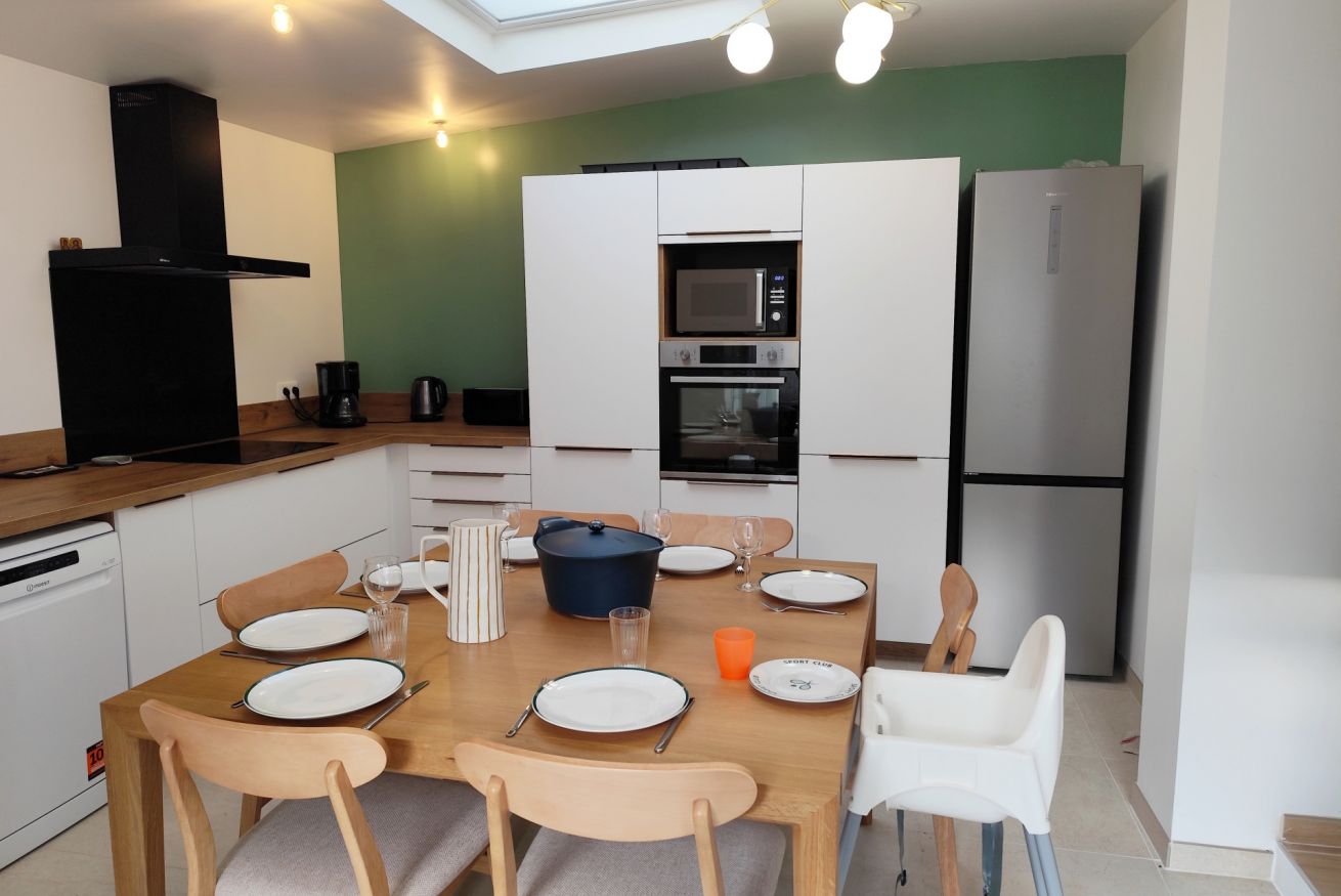 La grande cuisine entièrement équipée permet de préparer facilement vos repas, tandis que les 4 chambres et les 2 salles de bain réparties sur deux étages assurent confort et intimité à chacun.