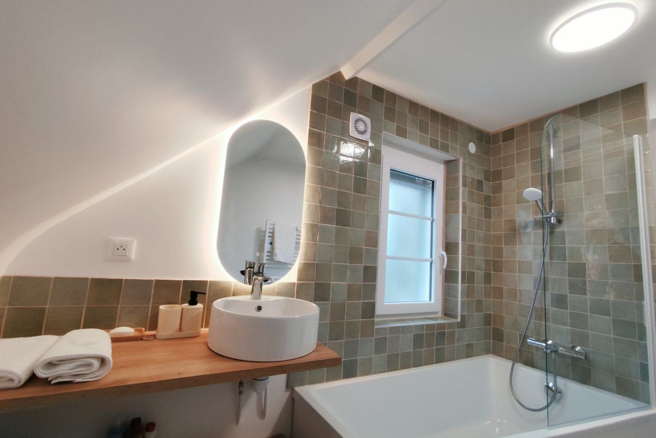 À l’extérieur, un petit coin jardin cosy vous invite à profiter des beaux jours, prendre un café au soleil ou partager des moments conviviaux en fin de journée.