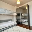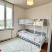 À l'étage, découvrez deux chambres soigneusement aménagées. La première chambre est dotée d'un grand lit confortable, garantissant des nuits paisibles. La deuxième chambre est idéale pour les enfants, avec deux lits superposés et un matelas supplémentaire pour un troisième enfant si besoin. Un espace pensé pour le confort familial et le repos après des journées riches en découvertes.