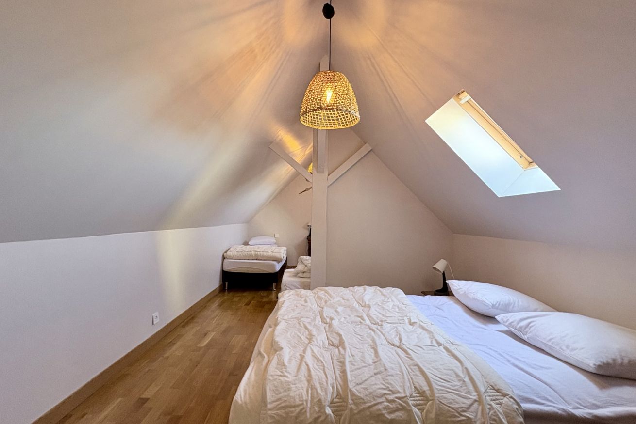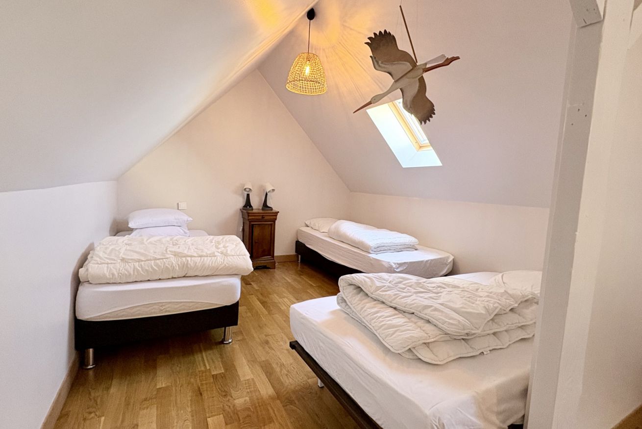 Charmante maison familiale pouvant accueillir jusqu’à 8 personnes, idéale pour se retrouver en toute convivialité. Elle offre deux chambres doubles au rez-de-chaussée et une grande chambre à l’étage avec quatre lits simples, ainsi qu’un espace jeux pour enfants. Vous profiterez d’un vaste séjour lumineux, d’une cuisine entièrement équipée et d’un agréable jardin clos avec terrasse ensoleillée et barbecue. Pensée pour le confort de tous, la maison dispose d’une salle de bain, de deux WC indépendants et de nombreux équipements pratiques. Un lieu chaleureux, chargé d’histoire, parfait pour des séjours en famille.