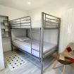 La maison dispose de deux chambres. À l'étage, vous trouverez une charmante chambre parentale, où un lit bébé est également disponible pour les familles avec un petit enfant. La deuxième chambre est équipée de deux lits superposés, parfaitement adaptés aux enfants ou aux amis proches.