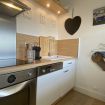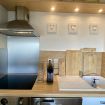 La cuisine est entièrement équipée avec un four micro-ondes et un lave-vaisselle pour rendre votre séjour le plus agréable possible. La cuisine est ouverte sur le salon, ce qui en fait un espace convivial pour préparer et partager des repas en famille ou entre amis. Le salon est également équipé d'un canapé confortable et d'une télévision pour se détendre après une journée bien remplie.