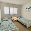 Le logement dispose de trois chambres confortables : deux chambres avec lit double et une chambre avec deux lits simples. Les lits sont équipés de draps et d'oreillers douillets pour une bonne nuit de sommeil après une journée de découverte de la région.