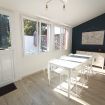 Salle à manger lumineuse, ouverte sur le jardin clos – parfait pour profiter de repas ensoleillés et sécurisés pour les enfants