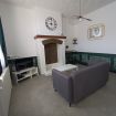 Salon chaleureux avec canapé, télévision et une cheminée uniquement décorative ( non utilisable) , pour vos soirées cocooning.